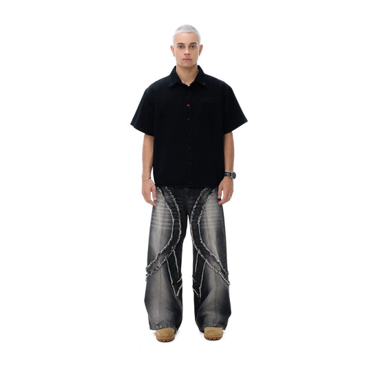 SWE RED BUTTON SHIRT - BLACK/OFF WHITE