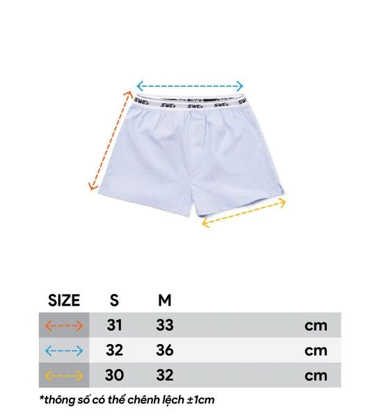 BOXER SHORTS - Boxer pants are gradually becoming a trend at the present time because of their coolness and comfort. With a trendy striped pattern and an elastic belt woven with the SWE brand logo, it will help you easily embellish your outfit more impressively and colorfully.
