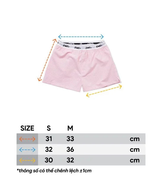 BOXER SHORTS - Boxer pants are gradually becoming a trend at the present time because of their coolness and comfort. With a trendy striped pattern and an elastic belt woven with the SWE brand logo, it will help you easily embellish your outfit more impressively and colorfully.