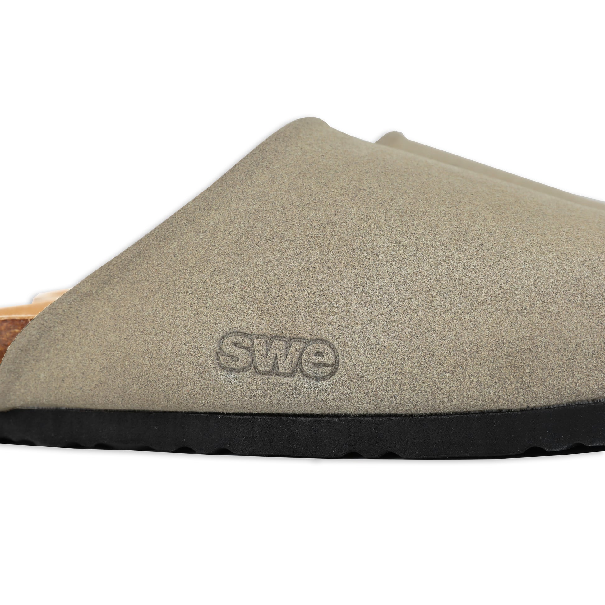 BARE SLIDES - The boston sandal with a chaff sole is designed with a sophisticated stitching strap and a minimalist plain strap version, bringing a sense of both fashion and ease of coordination. The SWE logo is embossed on the side and sole to create a distinctive highlight.