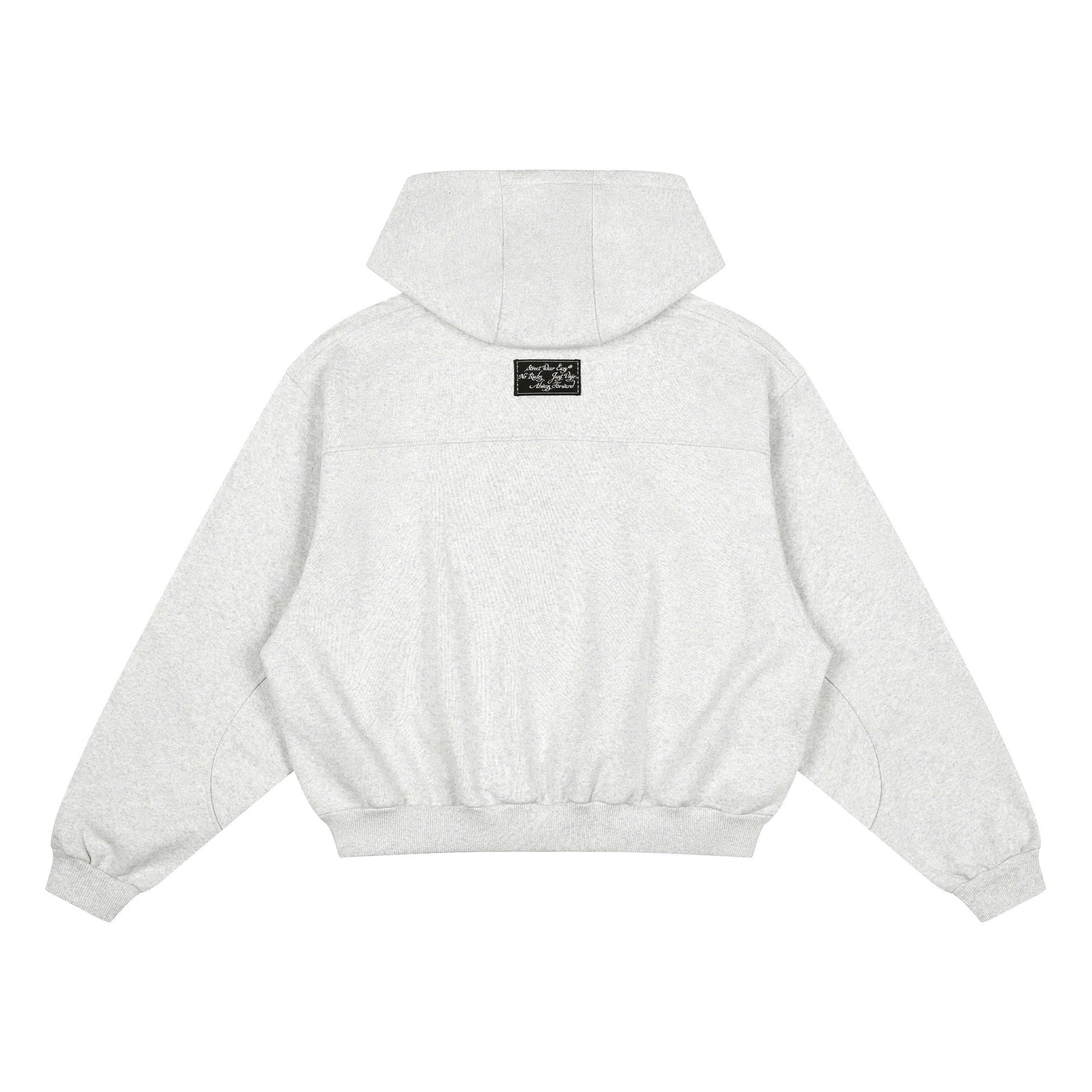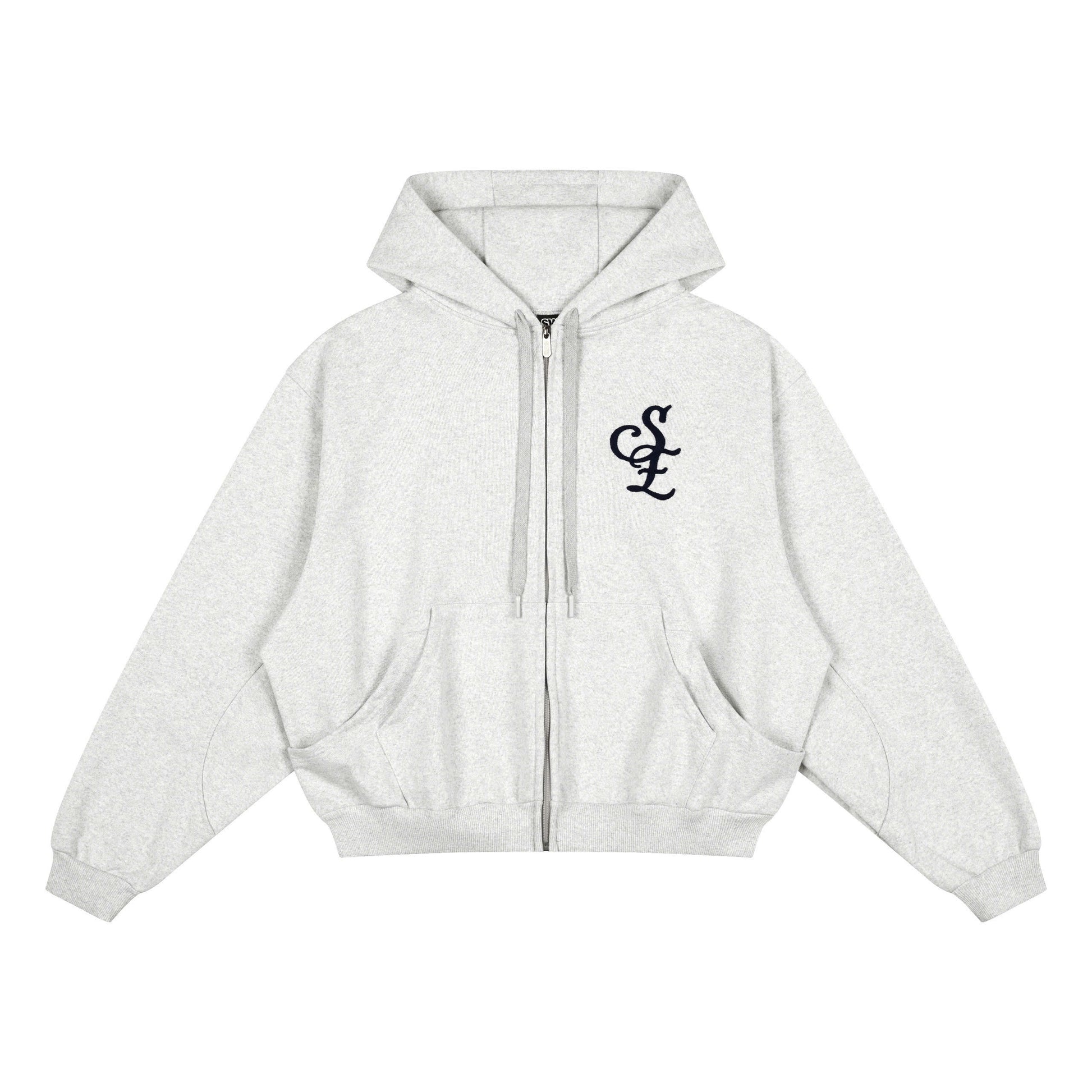 CORE ZIP HOODIE Boxy-fit hoodie with a relaxed, modern silhouette. Features double front patch pockets, panel detailing, and a utility-inspired zip pocket on the sleeve.