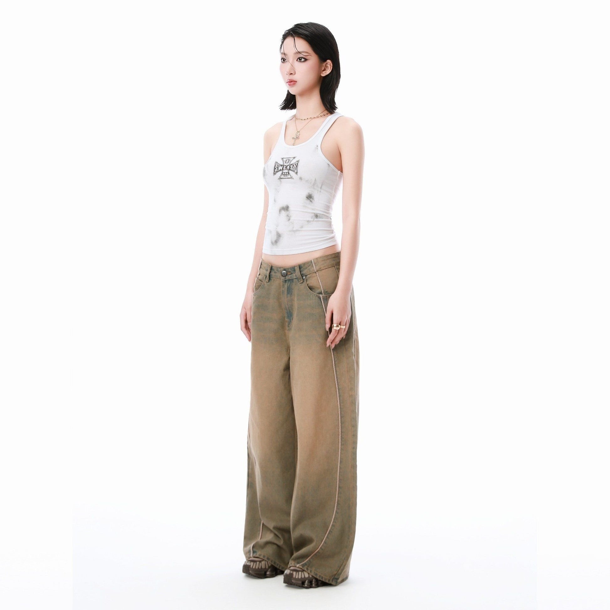 CROSS TANK TOP - The tank top is simply designed with the highlight of the shirt being the silk-screened pattern of the brand name with dirty stains creating a subtle highlight and bearing the mark of SWE.