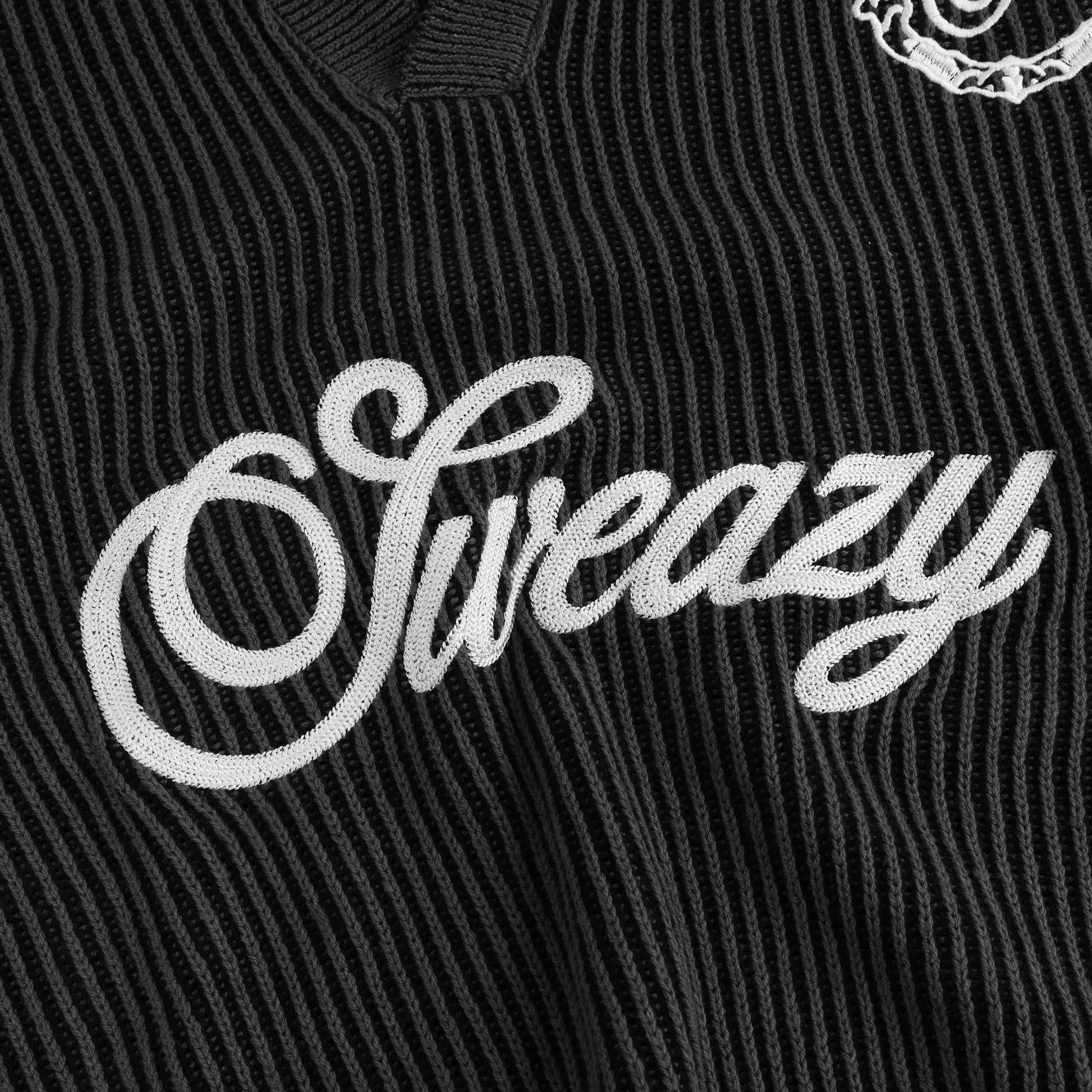 L/S KNIT POLO - A long-sleeve knit polo designed with a soft retro streetwear vibe. Features a chain-stitched brand name on the front and an embroidered logo on the left chest, signature to SWE. The two-tone yarn knit adds visual depth while keeping the fabric soft and breathable.