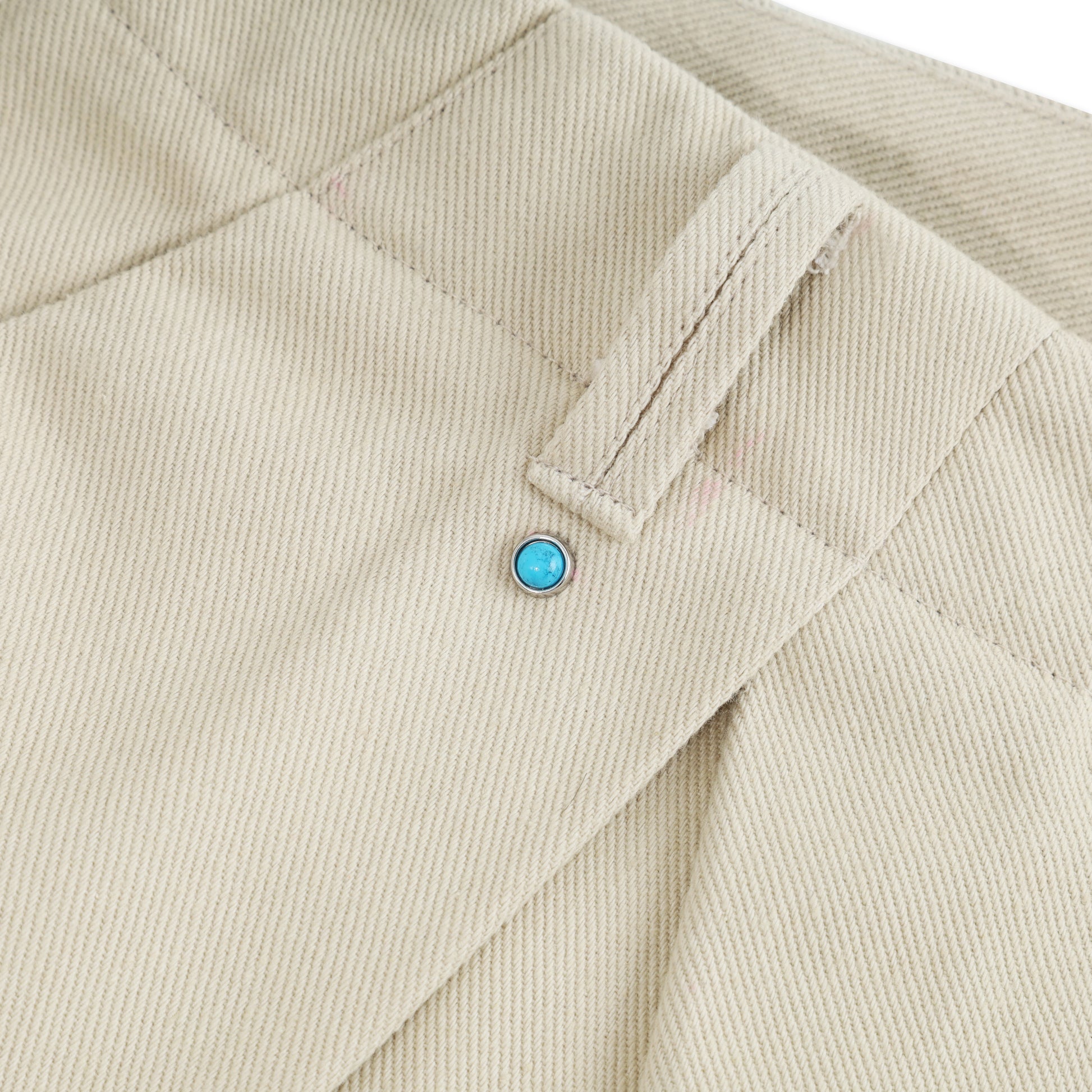 PLEATED WIDE SHORTS - Minimal khaki shorts from the “BROWN NOISE” collection, featuring subtle front pleats for a refined volume. Designed with a 3D embroidered brand logo on the back and a turquoise stone rivet detail at the slanted pocket for a bold, signature touch.