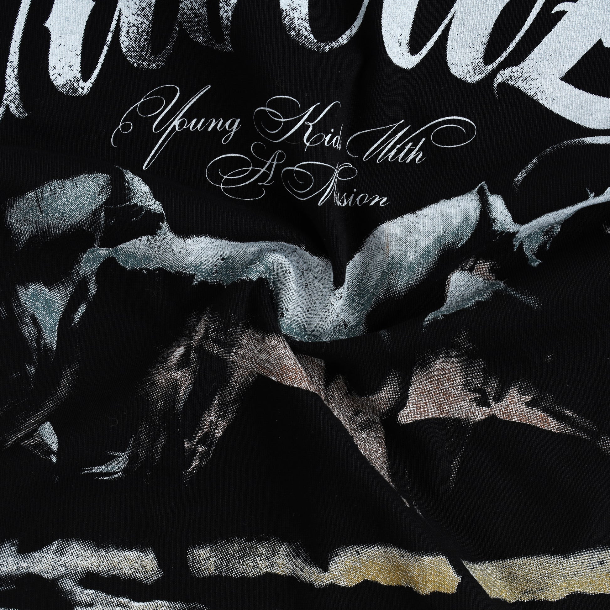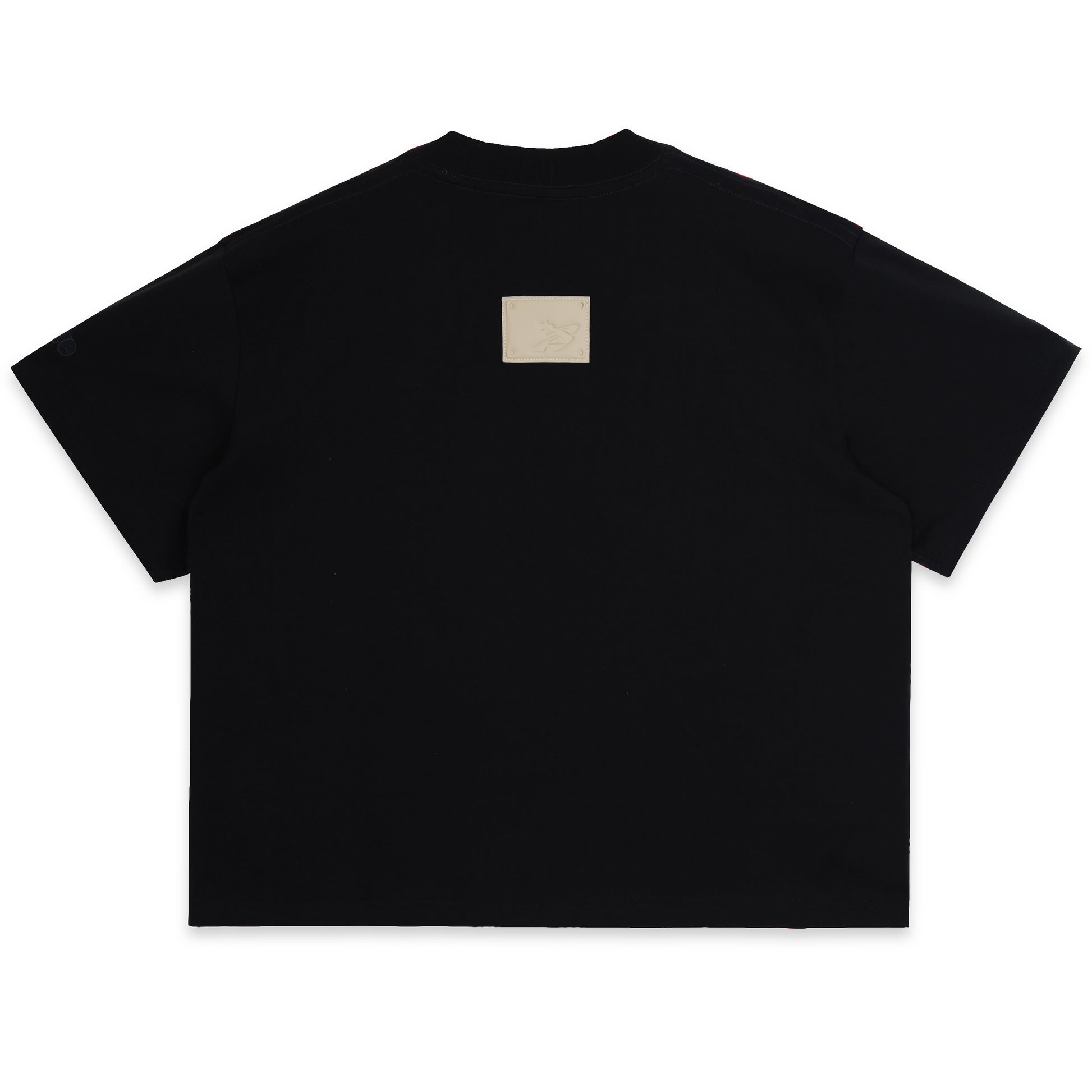 STAMPEDE BOXY TEE - A bold statement T-shirt featuring a sharp halftone print on the front, finished with a leather tag detail on the back for a refined SWE signature.