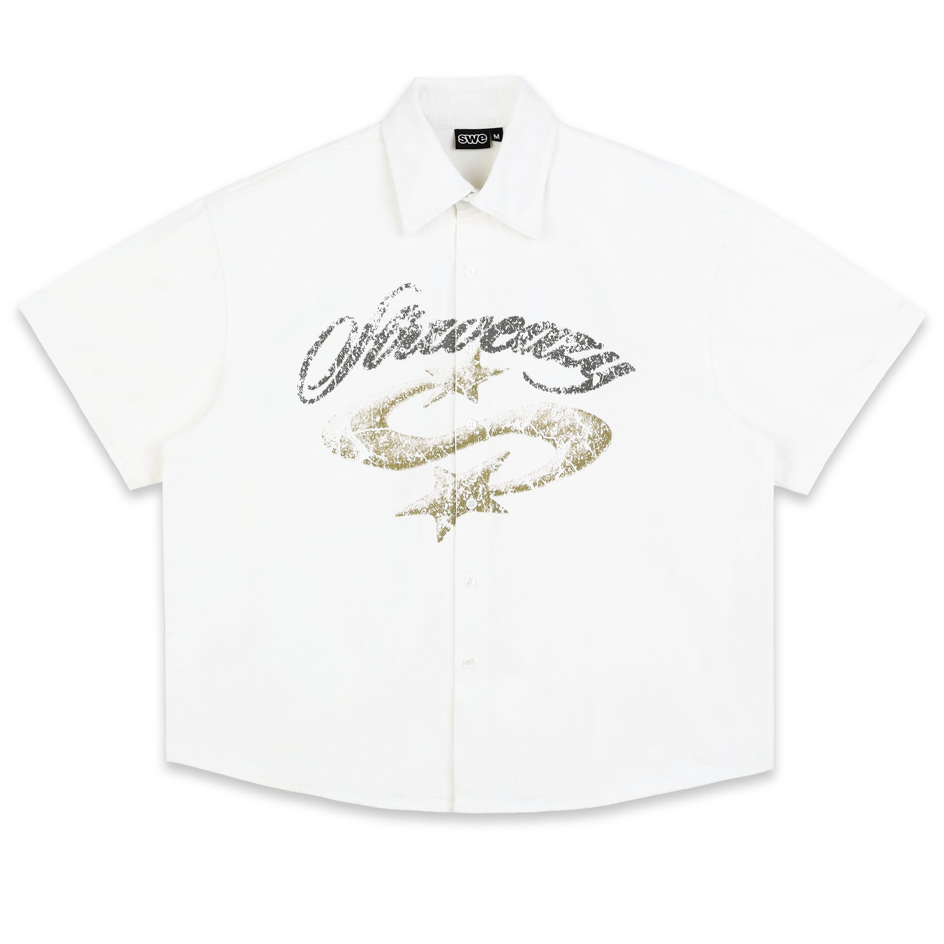 STARFADE SHIRT - The new shirt is impressively designed with the highlight of the shirt being the Typography pattern of the brand name on the front printed with sharp silk combined with eye-catching star patterns bearing the mark of SWE. The back is simple with SWE's new leather tag delicately attached.