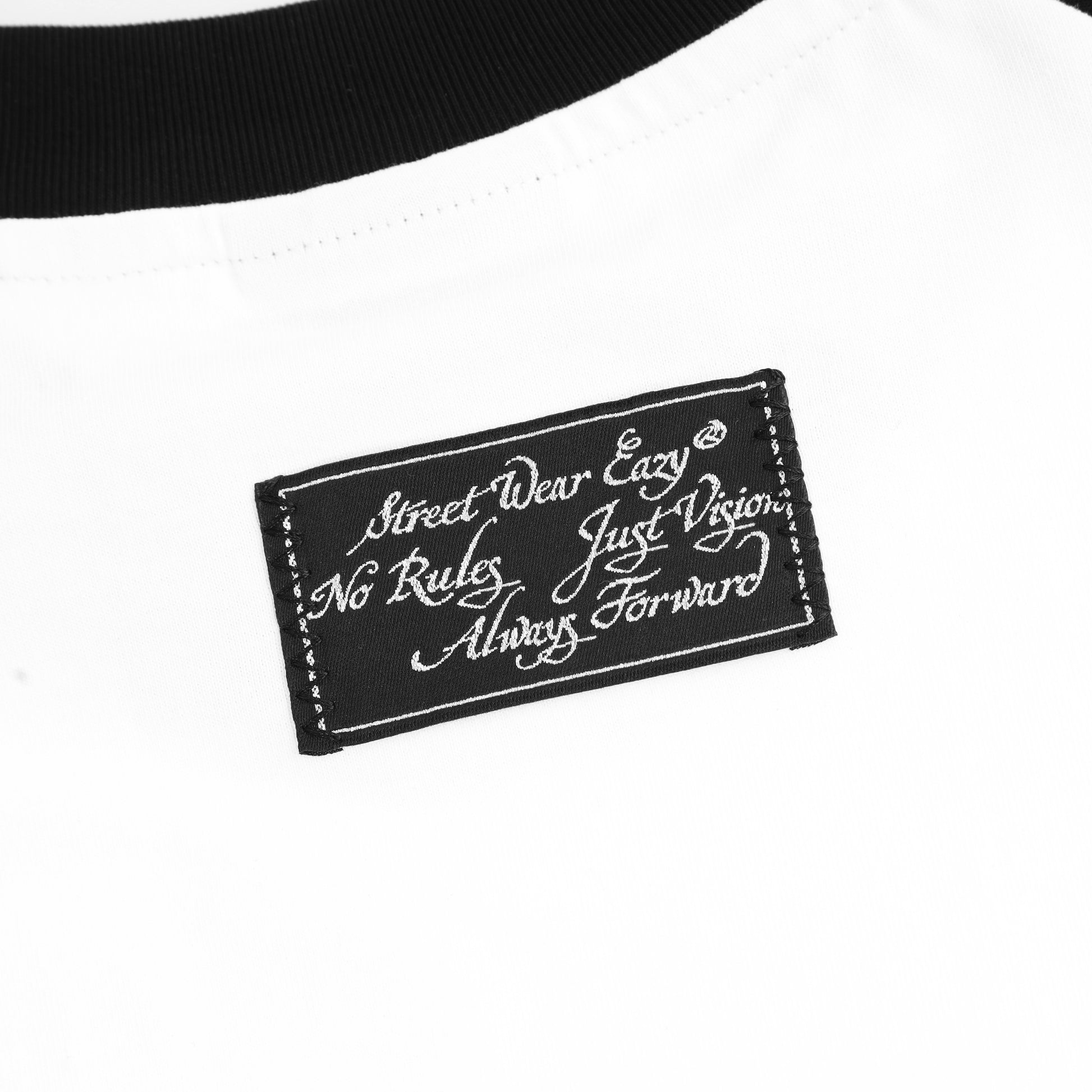 The sleeves feature sharp silk-screen printed graphics that create an eye-catching visual detail. The front chest is finished with a clean embroidered SWE logo, while the back stands out with a fabric appliqué “10” embroidery combined with a woven tag, bringing a sport-street vibe with a subtle retro touch.