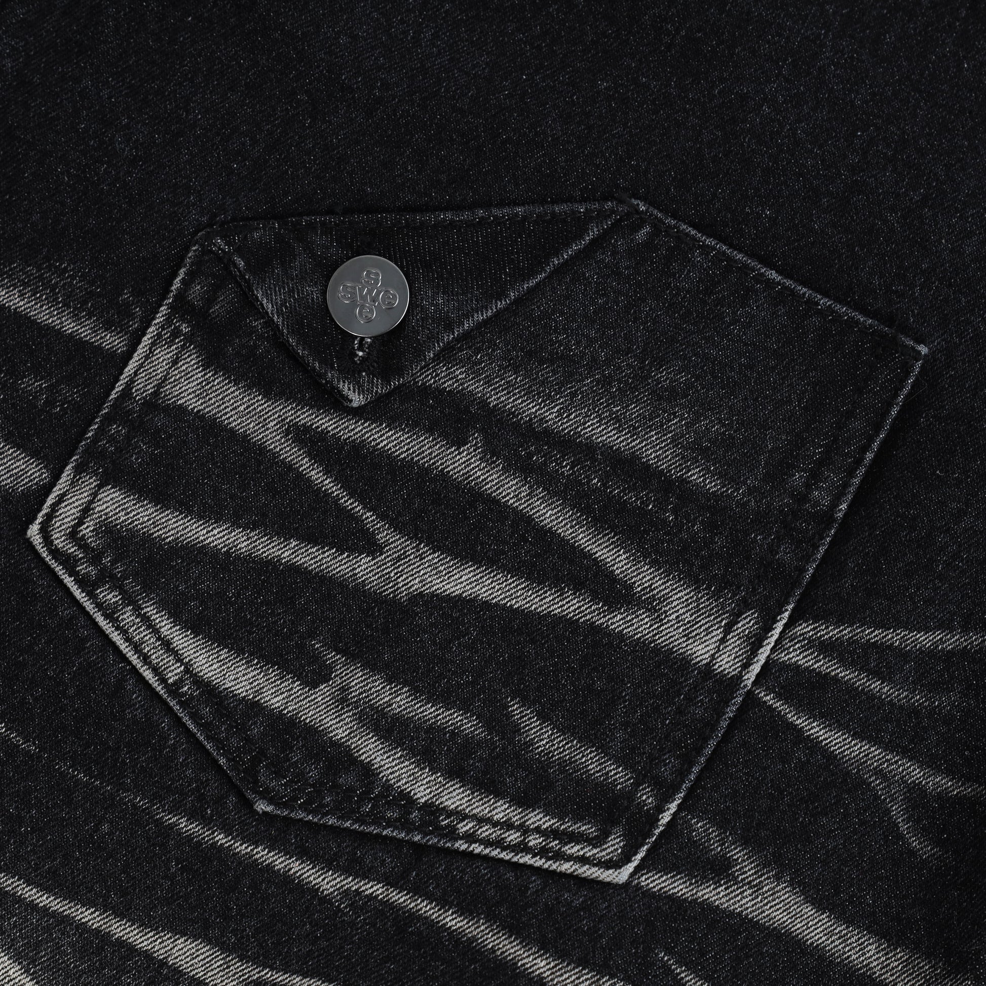 Made from cotton denim, the fabric provides a sturdy structure while remaining comfortable for everyday wear. A leather tag is attached to the front pocket for a refined accent, while the back welt pocket features raised 3D embroidery, completing SWE’s signature identity.