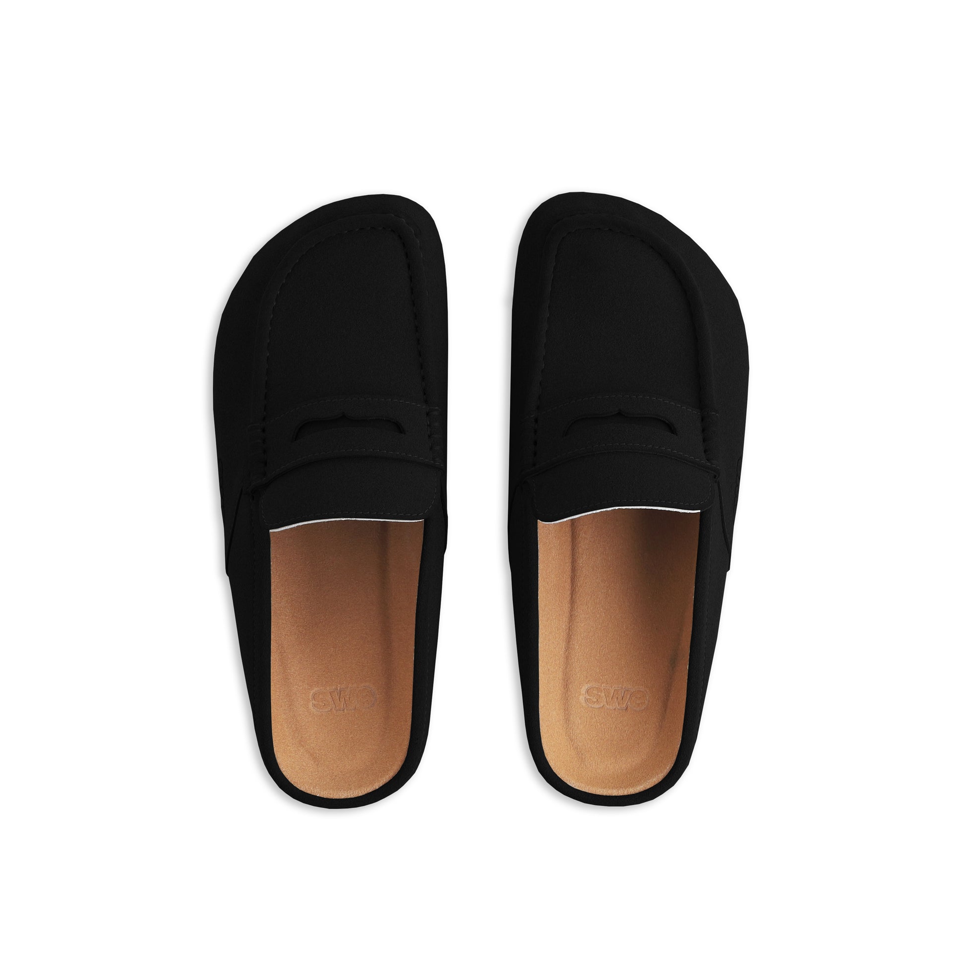 WORK SLIDES - The boston sandal with a rice husk sole is designed with a delicately sewn strap and an impressive penny strap version, bringing a feeling of both fashion and elegance, easy to coordinate with clothes. The SWE logo is embossed on the side and sole to create a distinctive highlight.